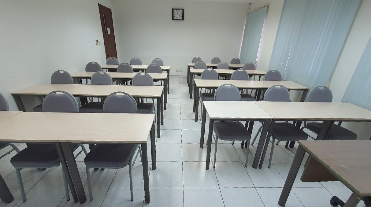 Phòng học 27 người với thiết bị đầy đủ: máy chiếu, bảng trắng, điều hòa, âm thanh chất lượng, wifi tốc độ cao. Sẵn sàng cho mọi buổi học.